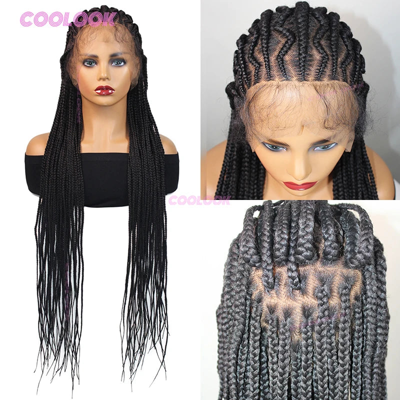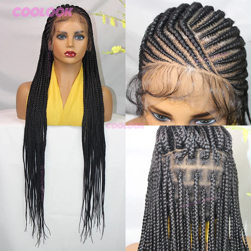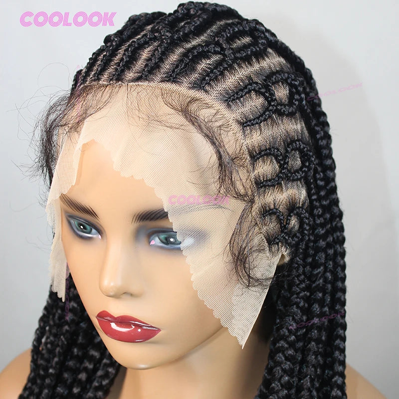 1B Burgundy Cornrow Braids Hair Wigs 36" Knotless Box Braid Wig Full Lace
